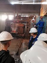 В сталелитейном цехе ребята увидели, как работает мостовой кран. Но самое завораживающее зрелище это то, как происходит плавка стали в дуговой сталеплавильной печи. Зрелище потоков раскаленного металла никого не оставит равнодушным. На участке фассоного литья (УФЛ) нам показали новые индукционные печи, которые используются для плавки стали и цветного металла.