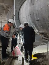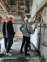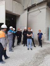 Ребята побывали в цехе «Помол цемента», где подрядчик на сегодняшний день проводил капитальный ремонт мельницы. В условиях повышенного шума слесари, сварщики, наладчики выполняли ремонтные работы. Студентам посчастливилось посмотреть внутрь ремонтируемой мельницы.